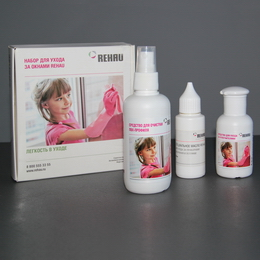 Для более качественного ухода за окнами рекомендуется использовать специальный набор по уходу за окнами, который можно приобрести в офисах оконных компаний или специализированных магазинах. Набор состоит из 3-х специальных компонентов: